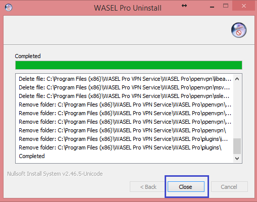 Confirm that you want to remove WASEL Pro and click “Yes”.